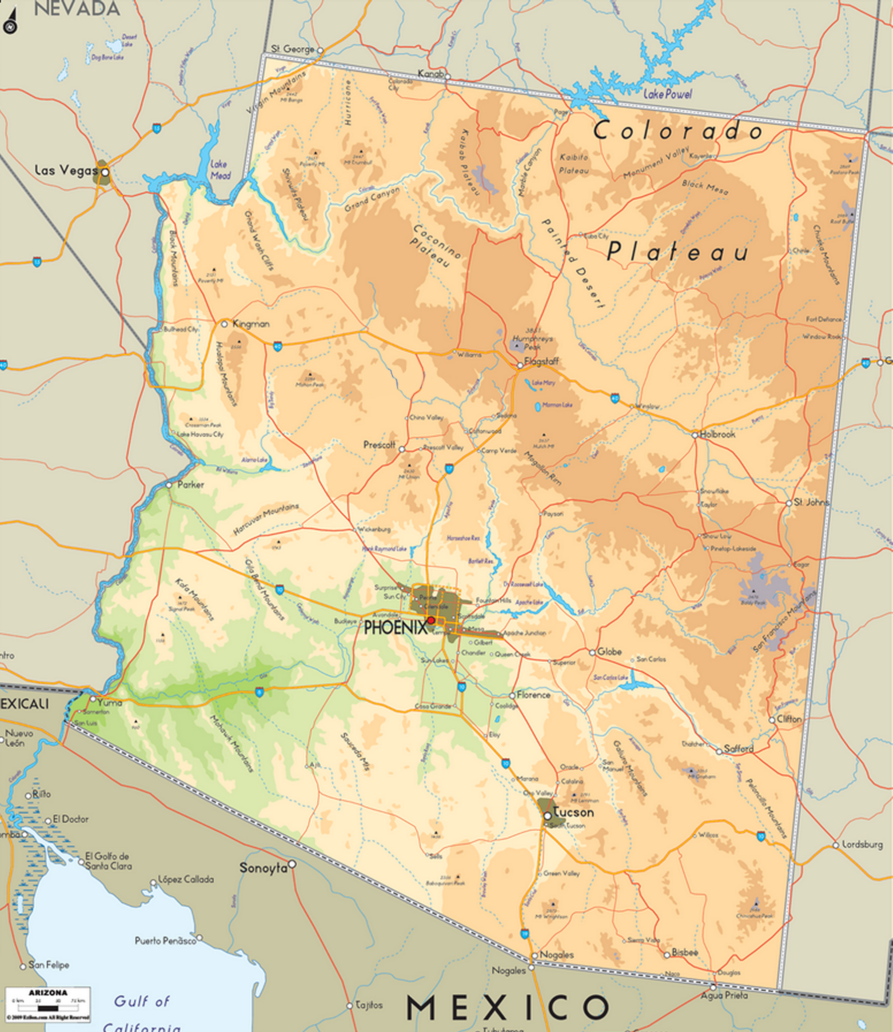 VARIOUS TYPES OF REPRESENTATIVE MAPS OF THE STATE OF ARIZONA